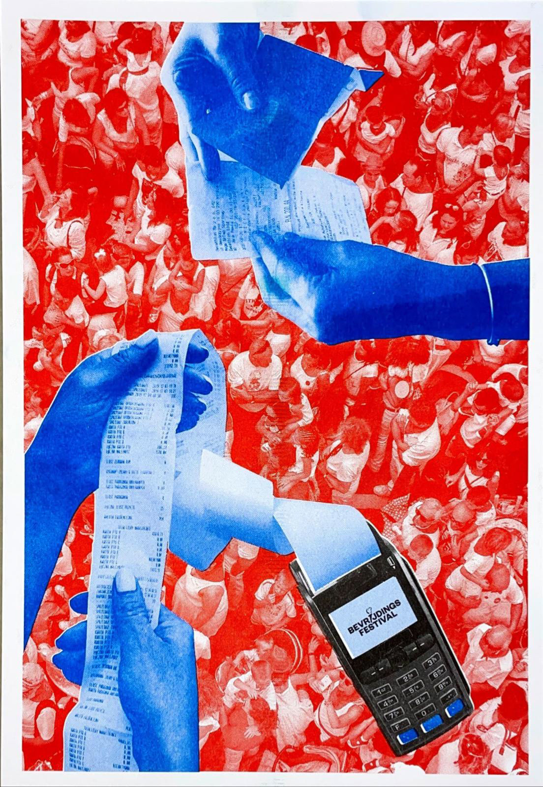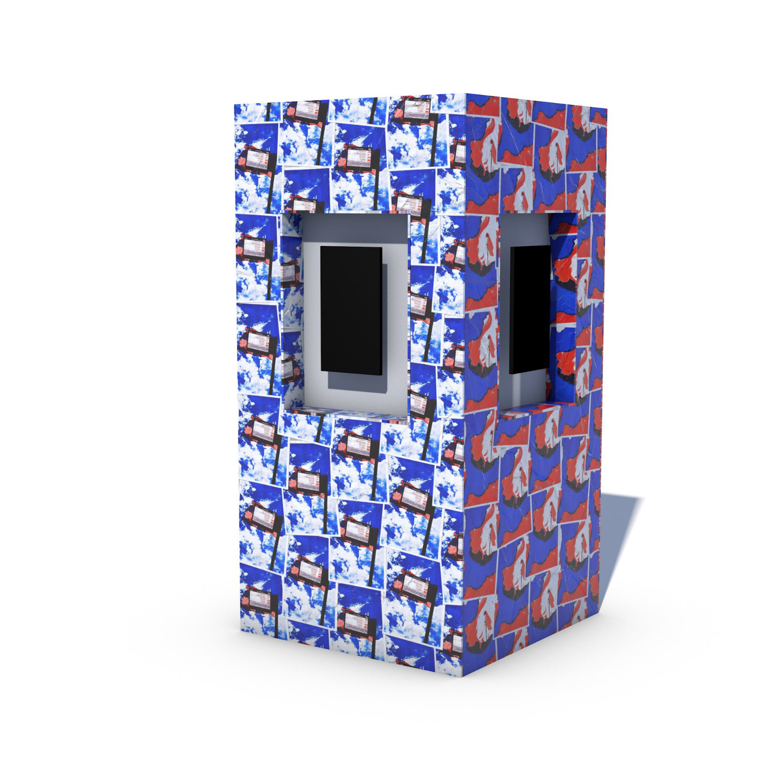 RISO prints made to cover the outside of an information stand in Bibliotheek Neude.